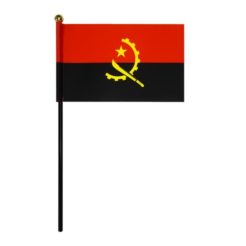 TOSPA アンゴラ 国旗 ミニフラッグ 1本立てセット 旗サイズ10.5×15.7cm テトロンスエード製 ポール27cm +スタンドセット 日本製 世界の国旗シリーズ