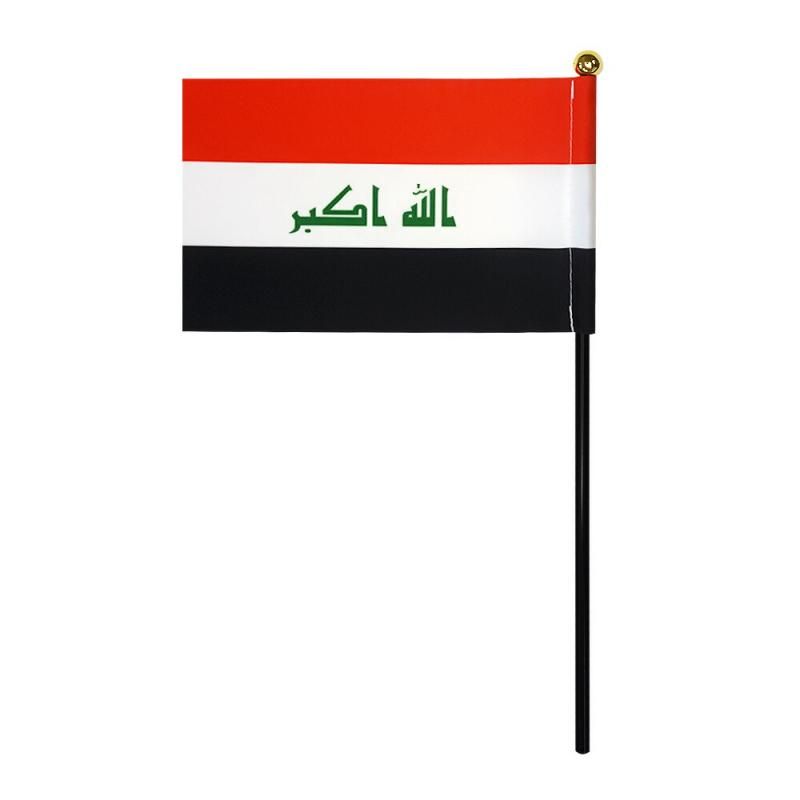 TOSPA イラク 国旗 ミニフラッグ 1本立てセット 旗サイズ10.5×15.7cm テトロンスエード製 ポール27cm +スタンドセット 日本製 世界の国旗シリーズ