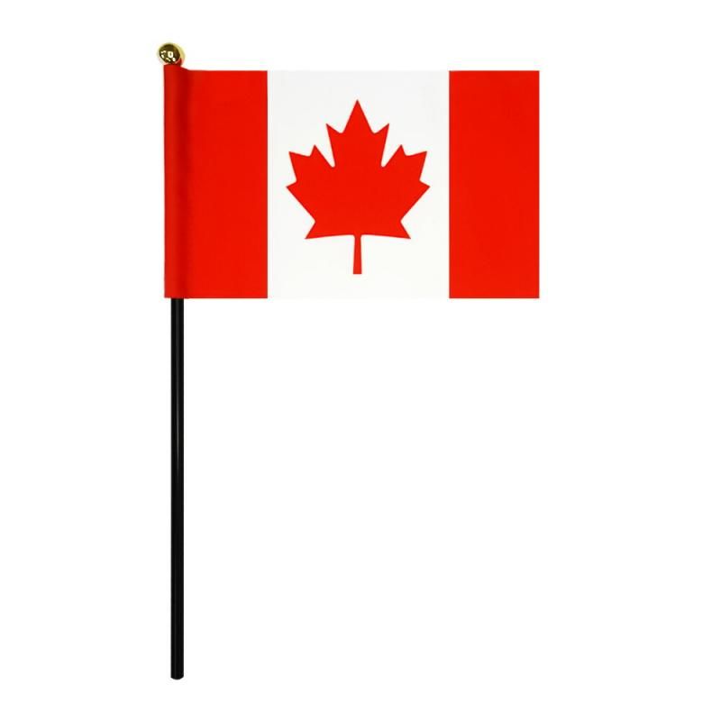 TOSPA カナダ 国旗 ミニフラッグ 1本立てセット 旗サイズ10.5×15.7cm テトロンスエード製 ポール27cm +スタンドセット 日本製 世界の国旗シリーズ