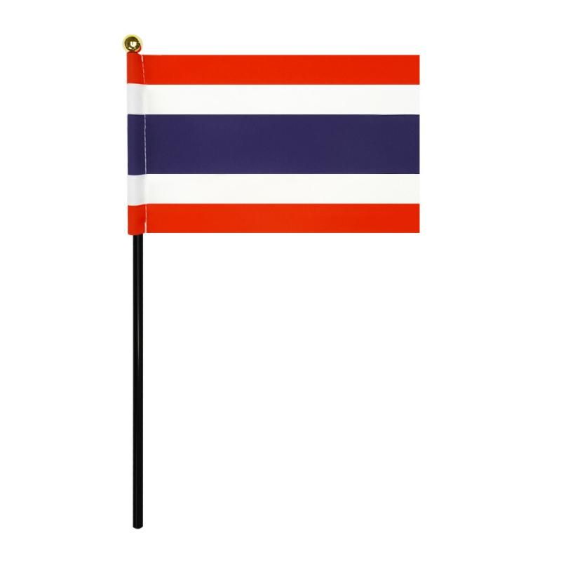 TOSPA タイ 国旗 ミニフラッグ 1本立てセット 旗サイズ10.5×15.7cm テトロンスエード製 ポール27cm +スタンドセット 日本製 世界の国旗シリーズ
