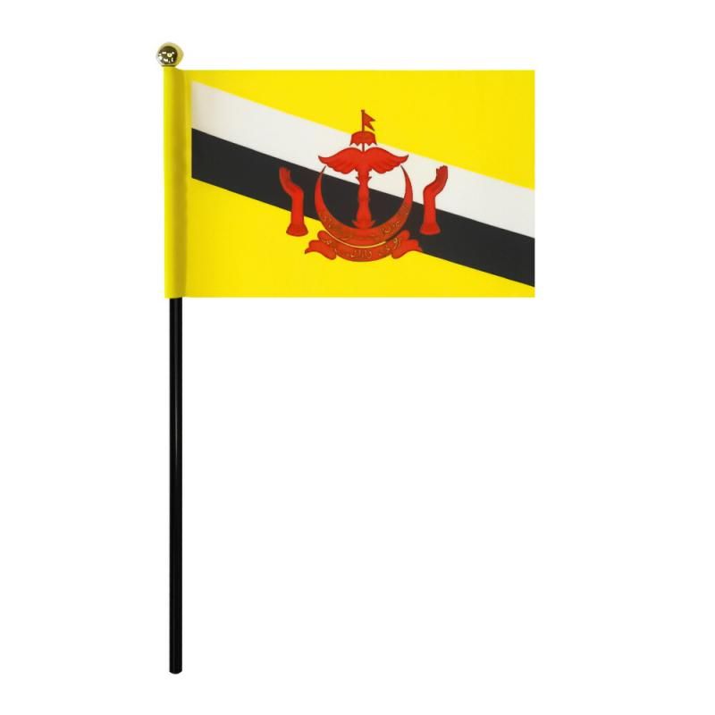 TOSPA ブルネイ 国旗 ミニフラッグ 1本立てセット 旗サイズ10.5×15.7cm テトロンスエード製 ポール27cm +スタンドセット 日本製 世界の国旗シリーズ