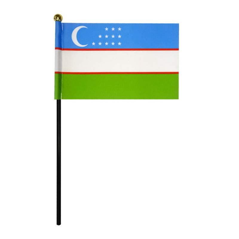 TOSPA ウズベキスタン 国旗 ミニフラッグ 1本立てセット 旗サイズ10.5×15.7cm テトロンスエード製 ポール27cm +スタンドセット 日本製 世界の国旗シリーズ