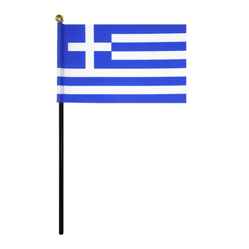 TOSPA ギリシア 国旗 ミニフラッグ 1本立てセット 旗サイズ10.5×15.7cm テトロンスエード製 ポール27cm +スタンドセット 日本製 世界の国旗シリーズ