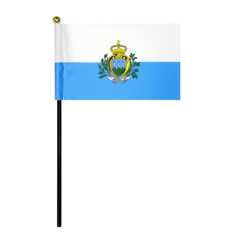 TOSPA サンマリノ 国旗 ミニフラッグ 1本立てセット 旗サイズ10.5×15.7cm テトロンスエード製 ポール27cm +スタンドセット 日本製 世界の国旗シリーズ