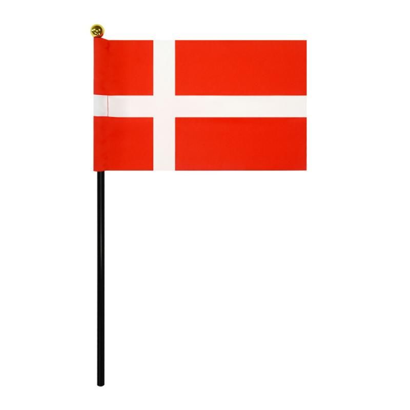 TOSPA デンマーク 国旗 ミニフラッグ 1本立てセット 旗サイズ10.5×15.7cm テトロンスエード製 ポール27cm +スタンドセット 日本製 世界の国旗シリーズ