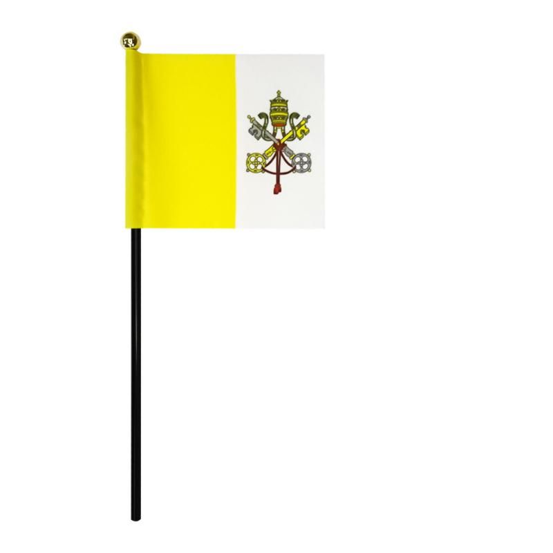 TOSPA バチカン 国旗 ミニフラッグ 1本立てセット 旗サイズ10.5×10.5cm テトロンスエード製 ポール27cm +スタンドセット 日本製 世界の国旗シリーズ
