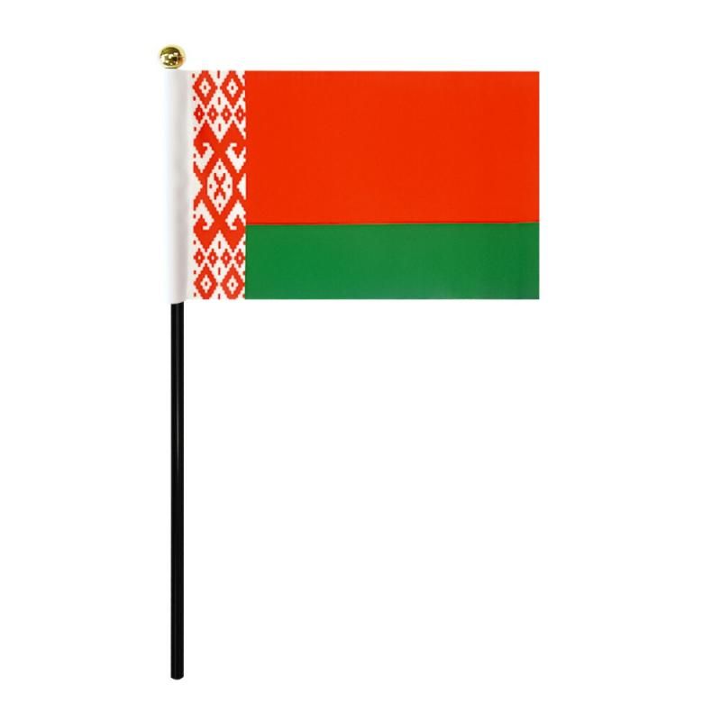 TOSPA ベラルーシ 国旗 ミニフラッグ 1本立てセット 旗サイズ10.5×15.7cm テトロンスエード製 ポール27cm +スタンドセット 日本製 世界の国旗シリーズ
