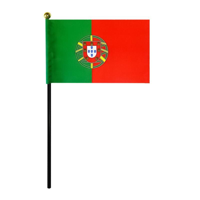 TOSPA ポルトガル 国旗 ミニフラッグ 1本立てセット 旗サイズ10.5×15.7cm テトロンスエード製 ポール27cm +スタンドセット 日本製 世界の国旗シリーズ