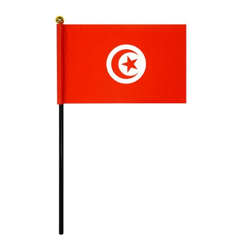 TOSPA チュニジア×日本 国旗 ミニフラッグ 2本立てセット 旗サイズ10.5×15.7cm テトロンスエード製 ポール27cm +スタンドセット 日本製 世界の国旗シリーズ