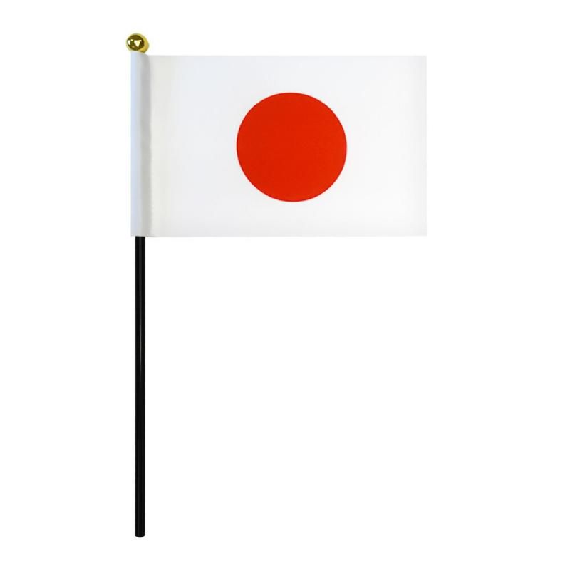 国旗はテトロンスエード製で、サイズは10.5×15.7cm、ポールは27cm、スタンド付き。